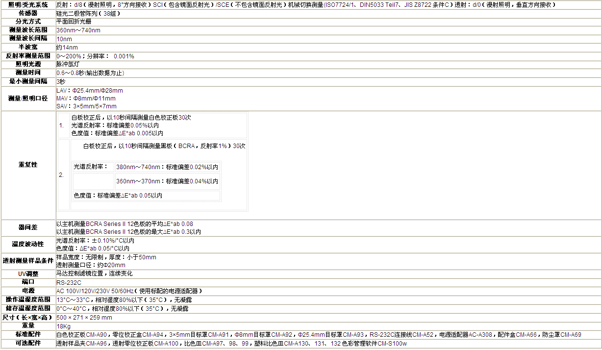 ● 采用d/8(擴(kuò)散照明/8°受光方式)光學(xué)系統(tǒng)。